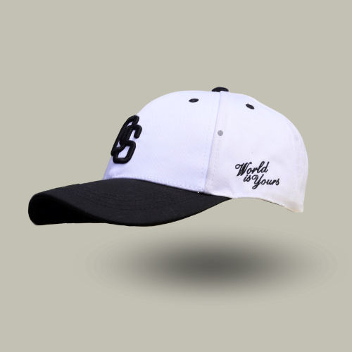 Diseño DS en la parte frontal representando una de las abreviaciones de la marca Davsok, en la parte izquierda de la gorra, la frase "World is Yours" bordada, en la parte trasera tiene Davsok bordada, y en el lateral derecho tiene el logo DAV